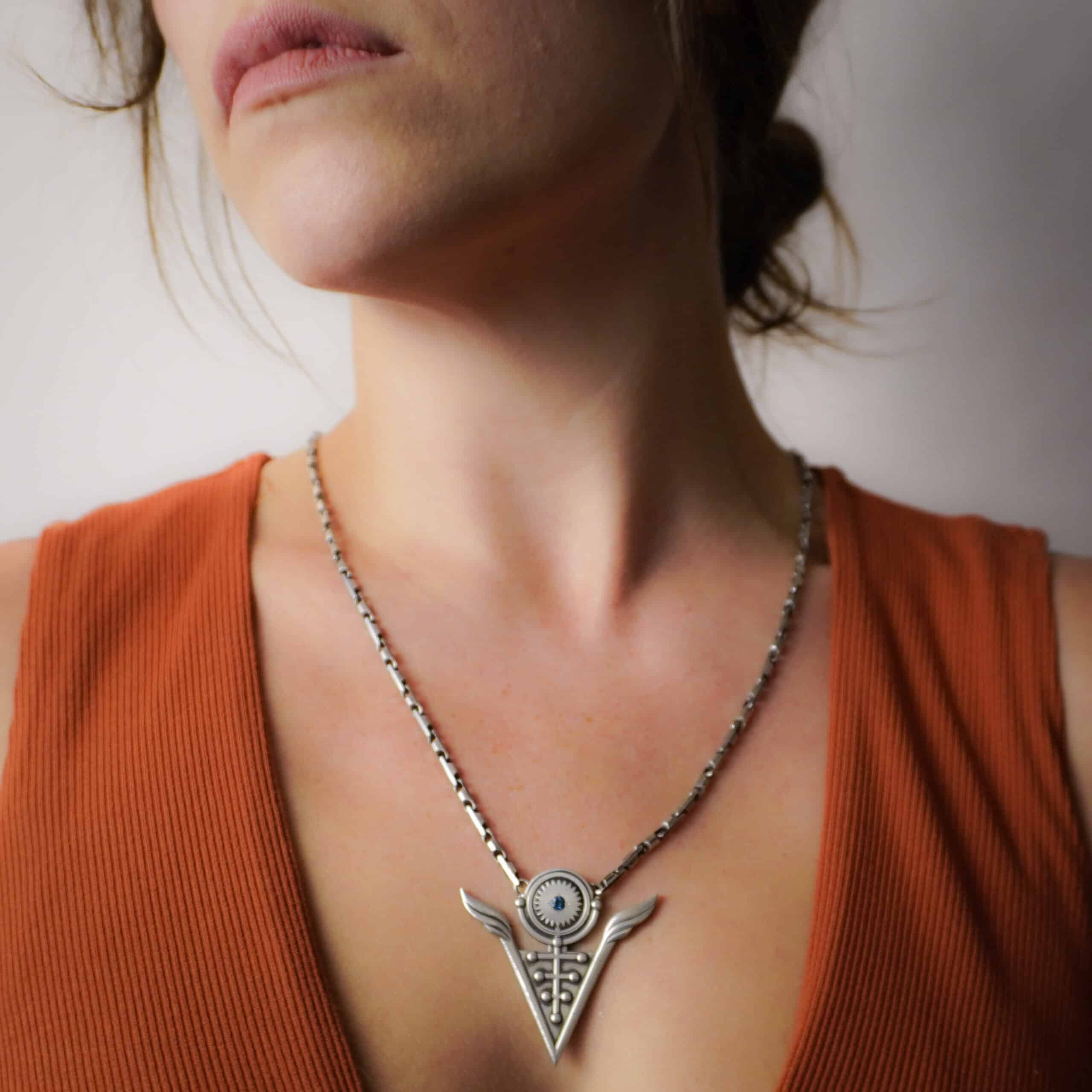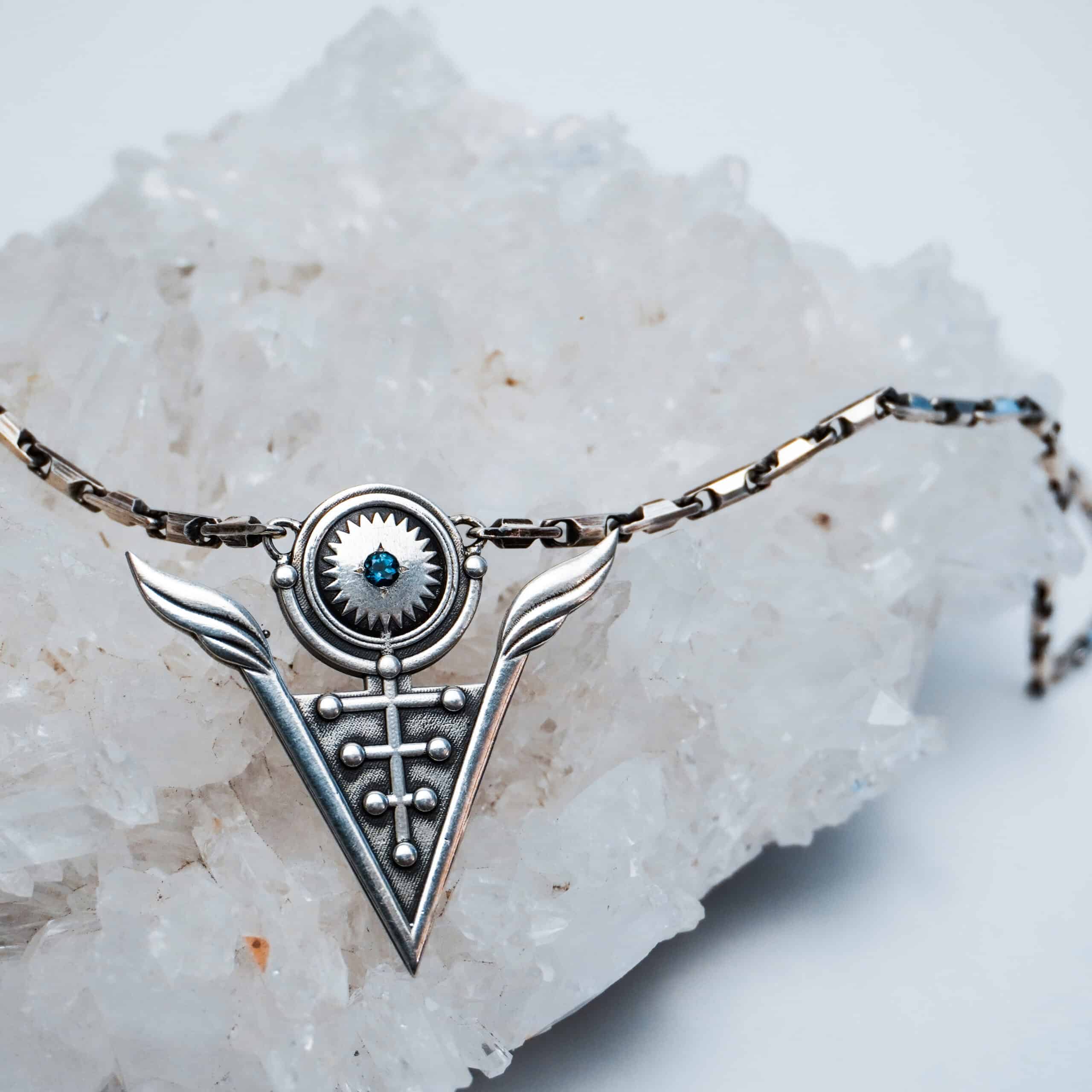 Each pendant is handmade by Pitango Trotoush in his Venice, California workshop using hand selected stones and sterling silver.